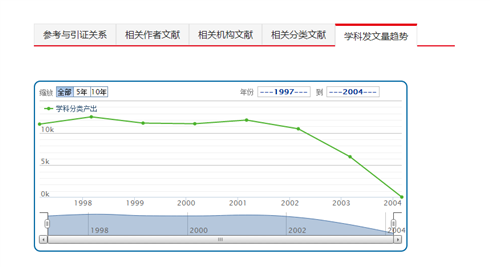 通过对每年发文量数据的展示,更直观的可以看到学科的发展情况,预测学科热点。