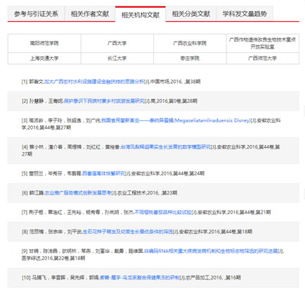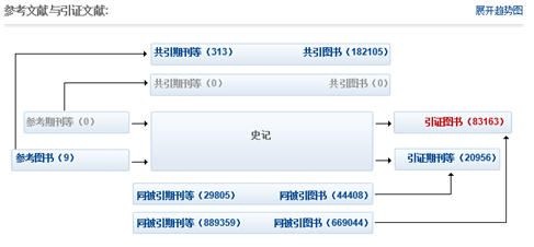 实现图书与图书之间、期刊与期刊之间、图书与期刊之间、以及其他各类文献之间的相互参考、相互引证关系分析。同时还可以查看同被引期刊和共引期刊。